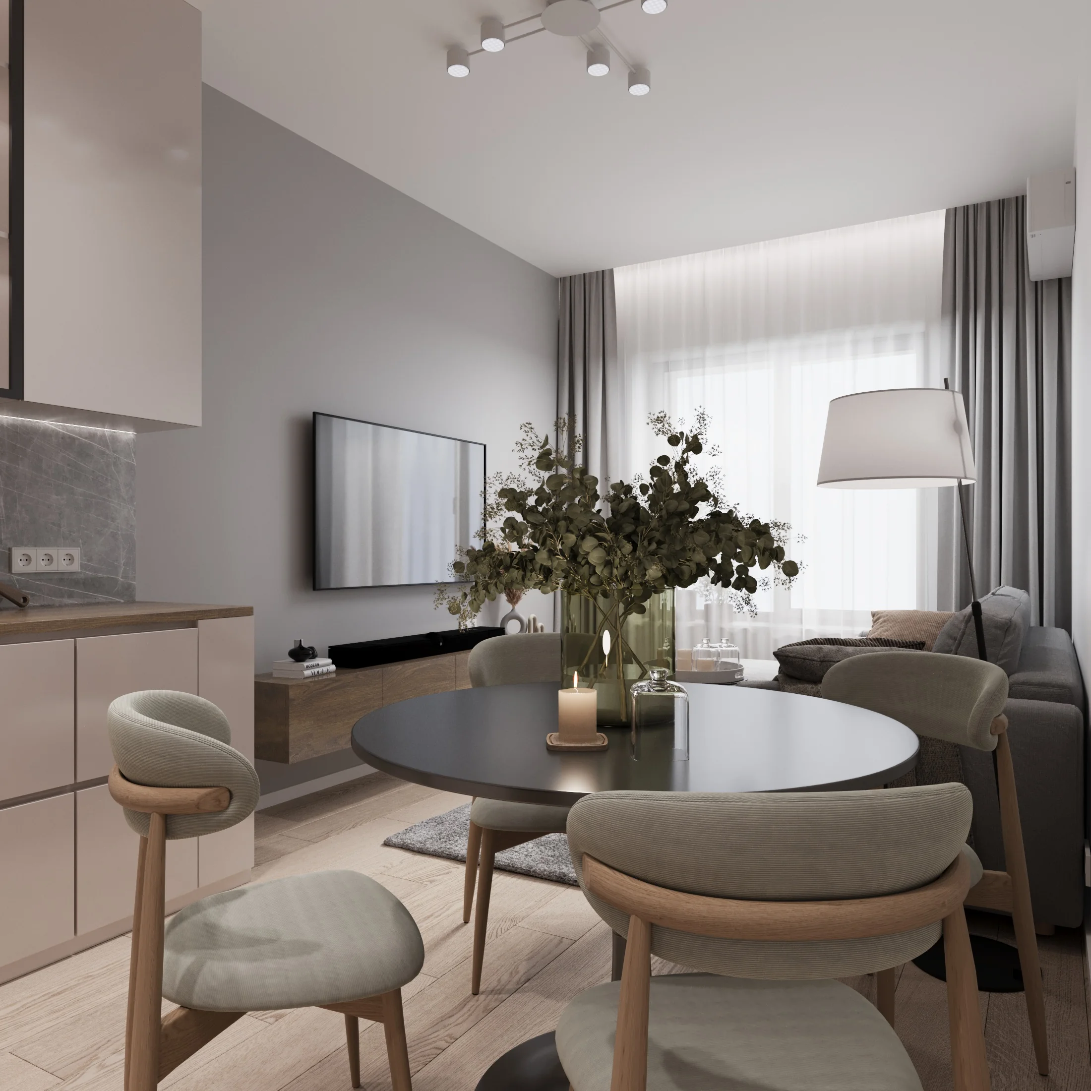 Ощущение свободы и спокойствия благодаря мягкой пастельной палитре и природным фактурам