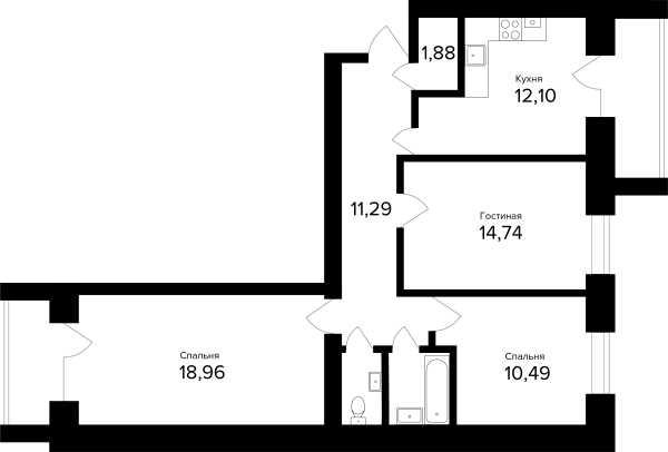 3-комнатная, 78.29м²