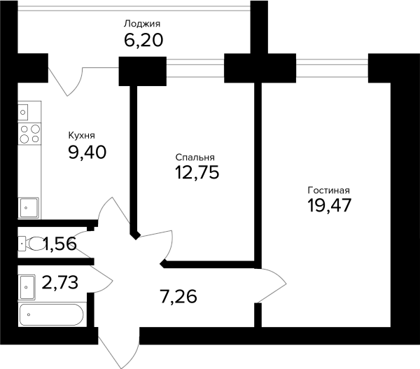 Новая 2-комнатная квартира в ЖК Норские резиденции на 3 этаже площадью 56.27 м² в 4 подъезде номер 71