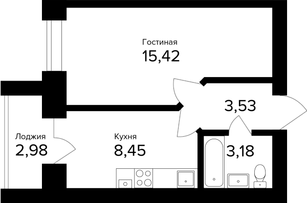 Новая 1-комнатная квартира в ЖК Норские резиденции на 3 этаже площадью 32.07 м² в 1 подъезде номер 11