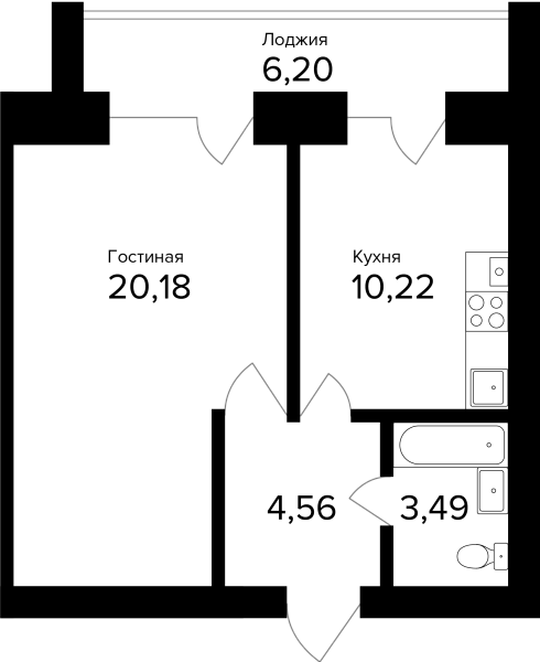 Новая 1-комнатная квартира в ЖК Норские резиденции на 5 этаже площадью 42.00 м² в 4 подъезде номер 78