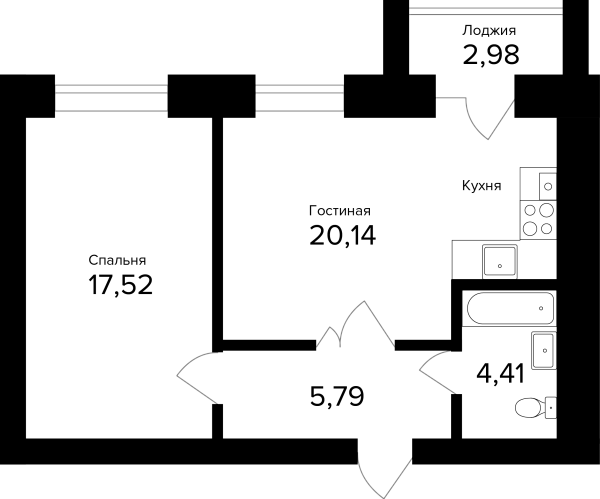 Новая 1-комнатная квартира в ЖК Норские резиденции на 4 этаже площадью 49.35 м² в 2 подъезде номер 39