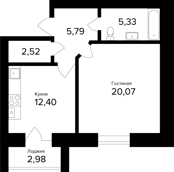 Новая 1-комнатная квартира в ЖК Норские резиденции на 3 этаже площадью 47.60 м² в 2 подъезде номер 37