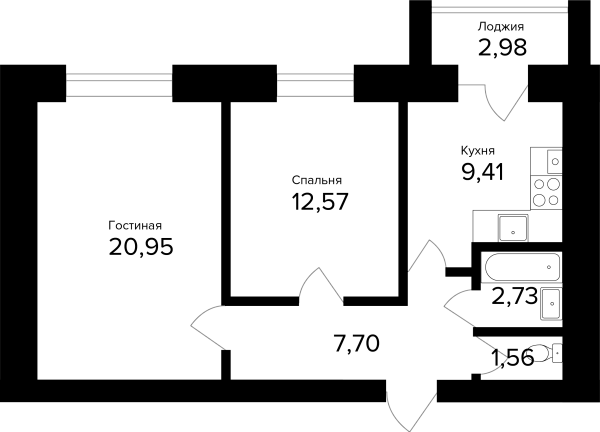 Новая 2-комнатная квартира в ЖК Норские резиденции на 1 этаже площадью 56.41 м² в 1 подъезде номер 3