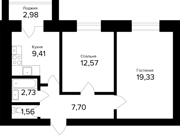 Новая 2-комнатная квартира в ЖК Норские резиденции на 1 этаже площадью 54.79 м² в 1 подъезде номер 4