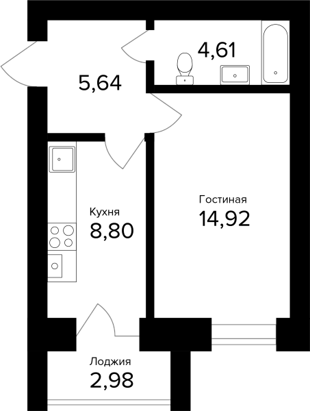 Новая 1-комнатная квартира в ЖК Норские резиденции на 4 этаже площадью 35.46 м² в 1 подъезде номер 20
