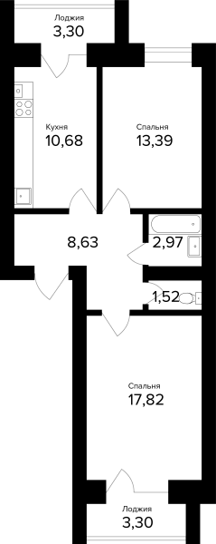 Новая 2-комнатная квартира в ЖК Норские резиденции на 2 этаже площадью 58.31 м² в 1 подъезде номер 6