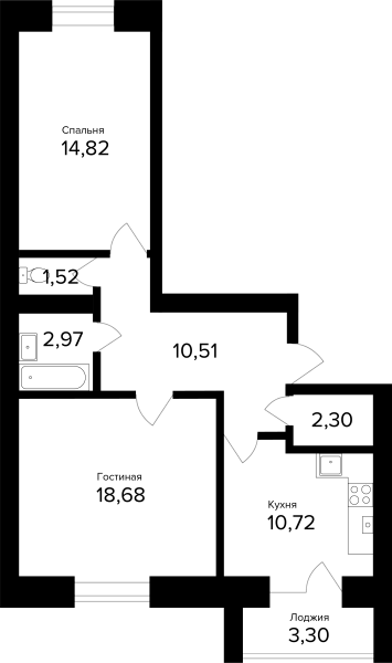 2-комнатная, 63.17м²
