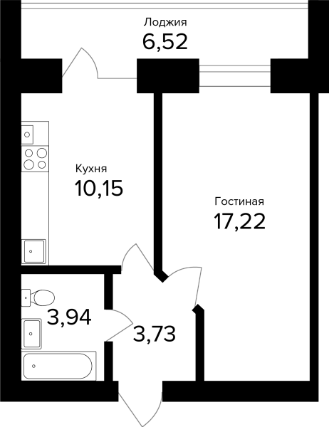 Новая 1-комнатная квартира в ЖК Норские резиденции на 1 этаже площадью 38.30 м² в 3 подъезде номер 38