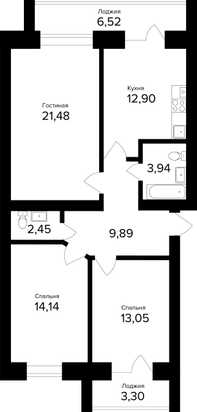 3-комнатная, 82.76м²