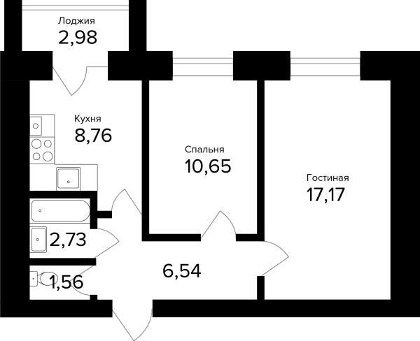 2-комнатная, 48.9м²