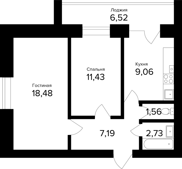 Новая 2-комнатная квартира в ЖК Норские резиденции на 2 этаже площадью 53.71 м² в 1 подъезде номер 5